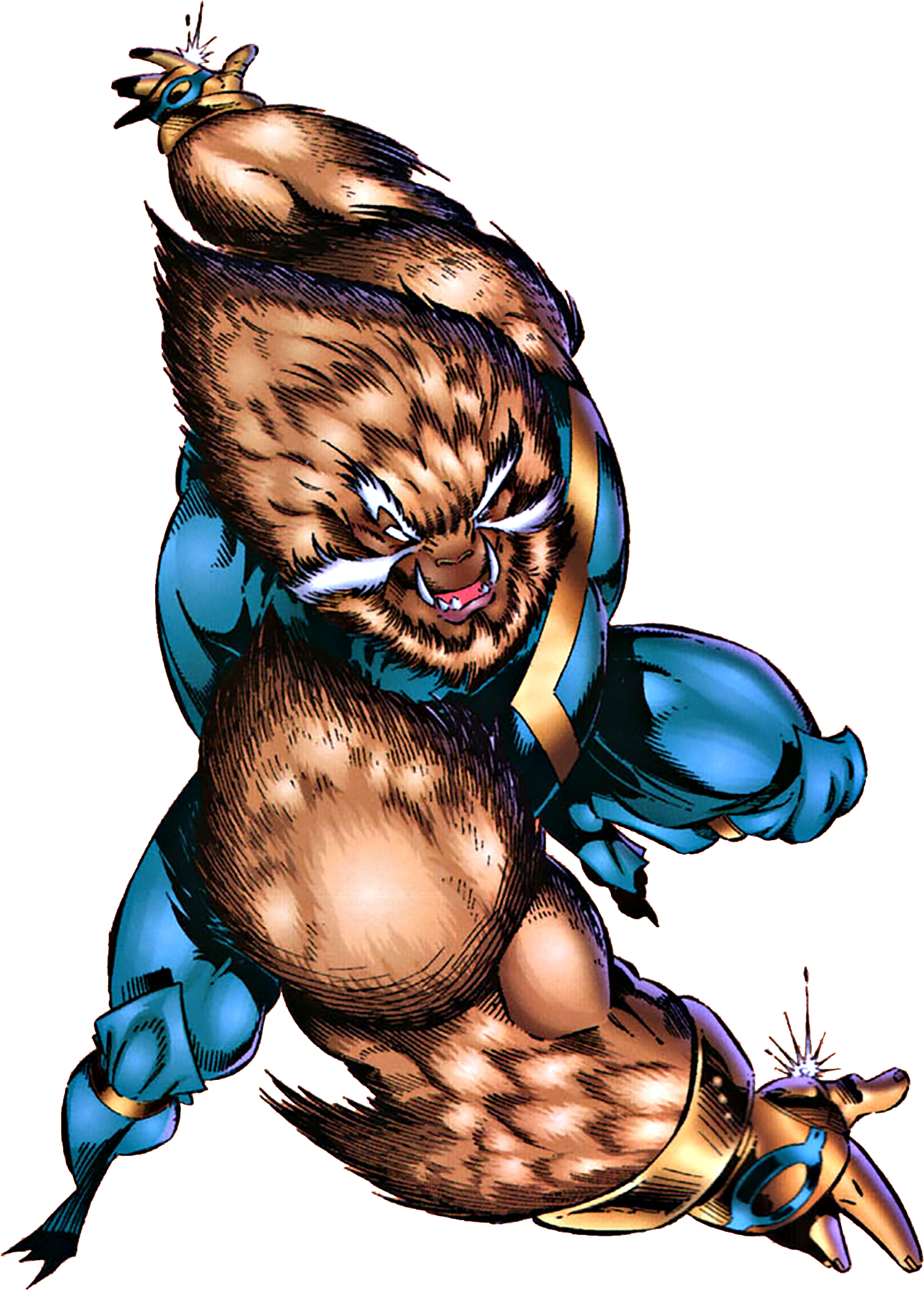 Thomas Runningbear Jr., as Kodiak, serves as the “brawn” of the team, often charging directly into battle against major threats like the villain Ikonn or the Brotherhood of Man. He can transform his body into a massive, bestial form resembling a Kodiak bear.