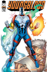 Youngblood is a superhero team starring in their self-titled comic book series, created by writer/artist Rob Liefeld. The team made its debut as a backup feature in RAMM #1 (May 1987) before the next month appearing in the one-shot Megaton Explosion #1 (June 1987) before later appearing in April 1992 in its own ongoing series as the flagship publication for Image Comics and the wider Image Universe. Youngblood was originally published by Image Comics, and later by Awesome Entertainment. Upon Rob Liefeld’s return to Image Comics, it was revived in 2008, 2012, 2017, 2024 via web sales direct to consumers, and 2025 at mass comic retail. In 2019, Liefeld revealed that he has not owned the rights to Youngblood for several years.